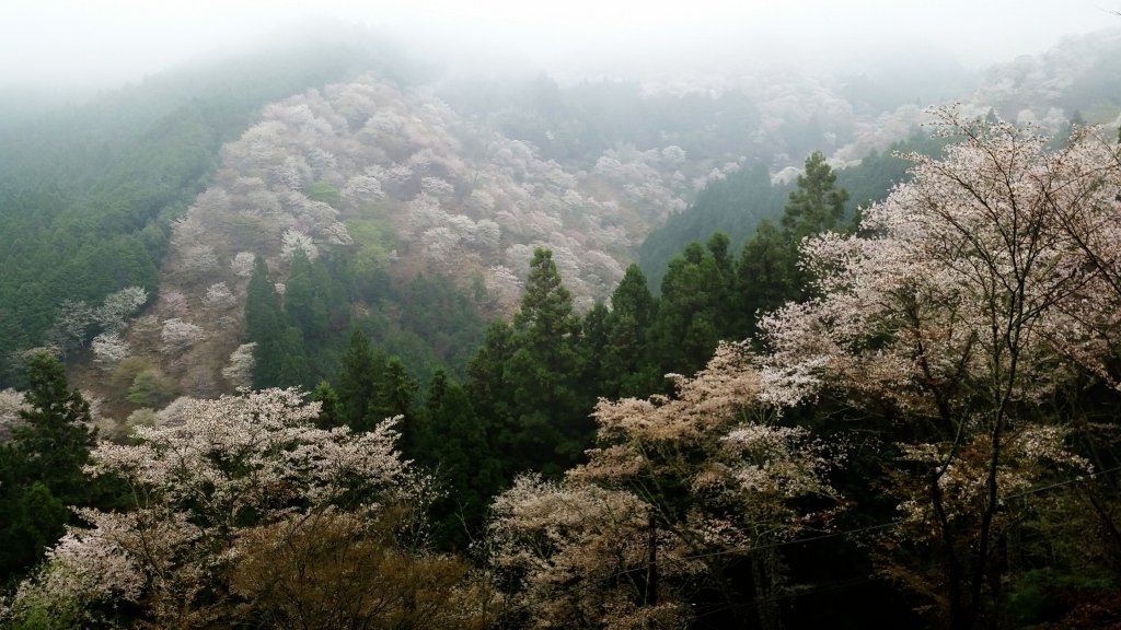 数週間前、私は友人と一緒に、京都から奈良の吉野山まで電車で行きました。約1時間半、何世紀にもわたって最も有名な桜の鑑賞スポットと言われている吉野に着きました。山の木は7世紀に植林開始されたと言われおり、現在は山のほぼ全てがさまざまな品種で覆われています。