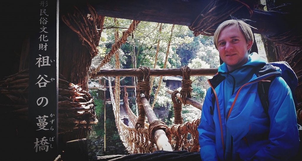 二日目は、早く起きて徳島に向けた普通電車に旅を続けた。大歩危駅に着いてバスに乗って滑りやすくて雪路山々まで(私は一人だけの客)。1時間後かずら橋に到着して、すばらしくて古い橋が見えました。その後、第二の目標、周囲の山々の壮大な景色を望む屋外温泉へ1キロぐらい歩きました。温泉は、かずら橋ホテルからロープウェイの車に乗って行きました。また、客は私だけでした!讃岐財田に帰って、赤鬼というローカルな居酒屋に新しい友達のとしあきさんとずしさんと一緒に飲みに行きました。そしてこの素敵な一日を終えました。